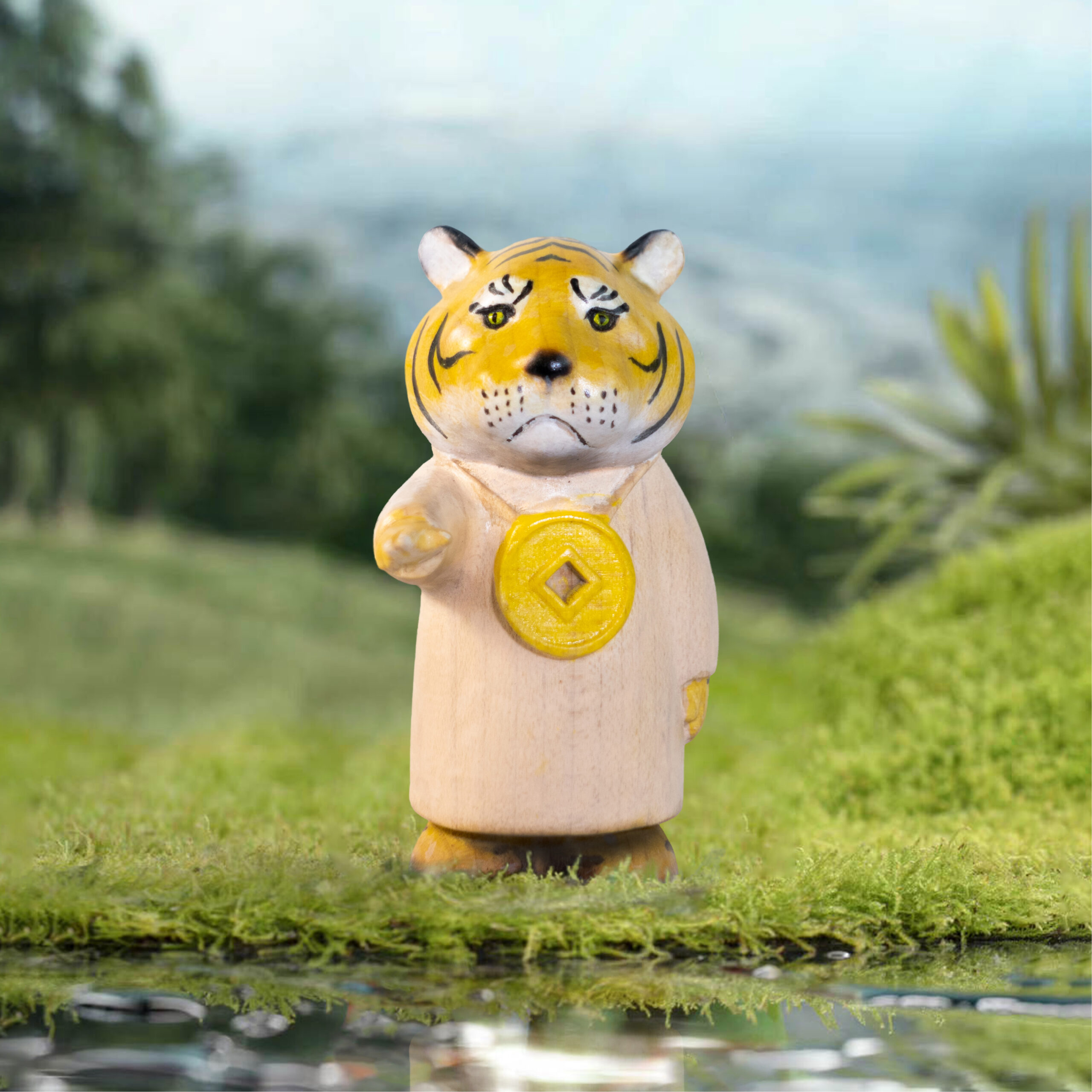 Tiger — Money Guides the Way, with a large copper coin hanging on the chest.