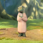 Pig — You’re Smart Like Scallions, holding a bundle of green onions in both hands.